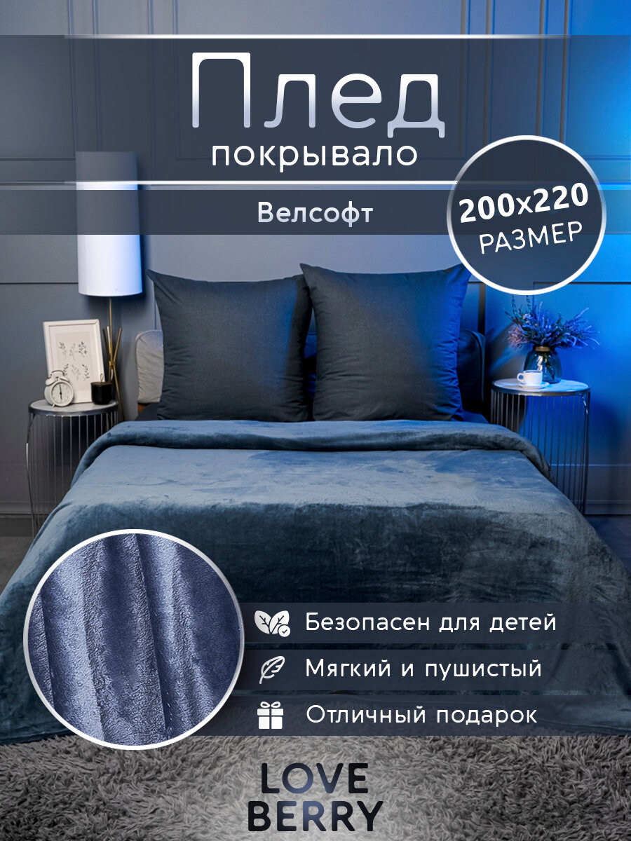 Отзывы на Плед 200х220 LOVEBERRY Евро в спальню однотонный из велсофта, стальной синий