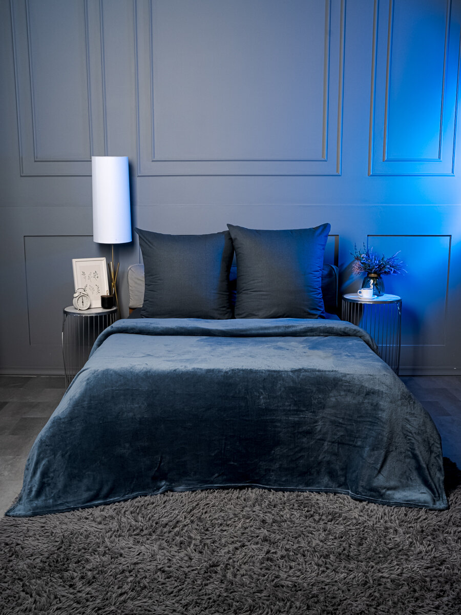 Плед 150х200 LOVEBERRY плюшевый на диван однотонный, стальной синий информация: