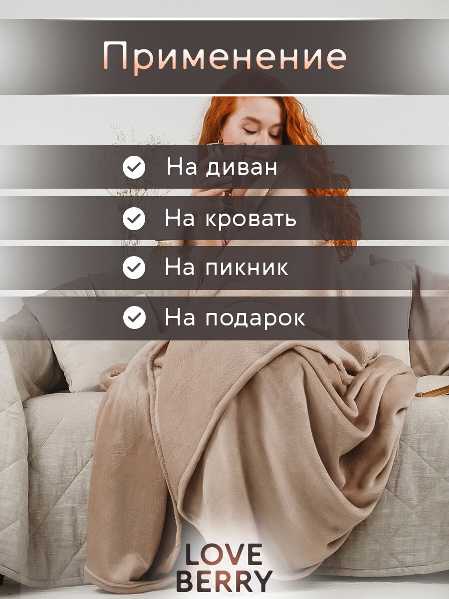 Плед 150х200 LOVEBERRY плюшевый на диван однотонный, бежевый, подарок маме информация: