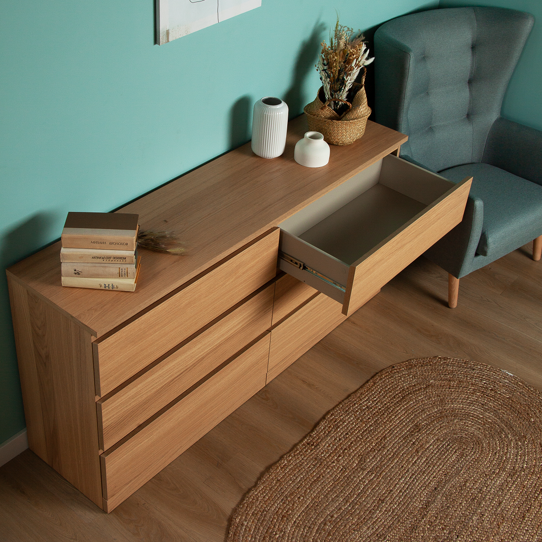 Комод горизонтальный ГУД ЛАКК Варма, 6 ящиков, 160х78х40 см, шпон натурального дерева, дуб беленый информация: