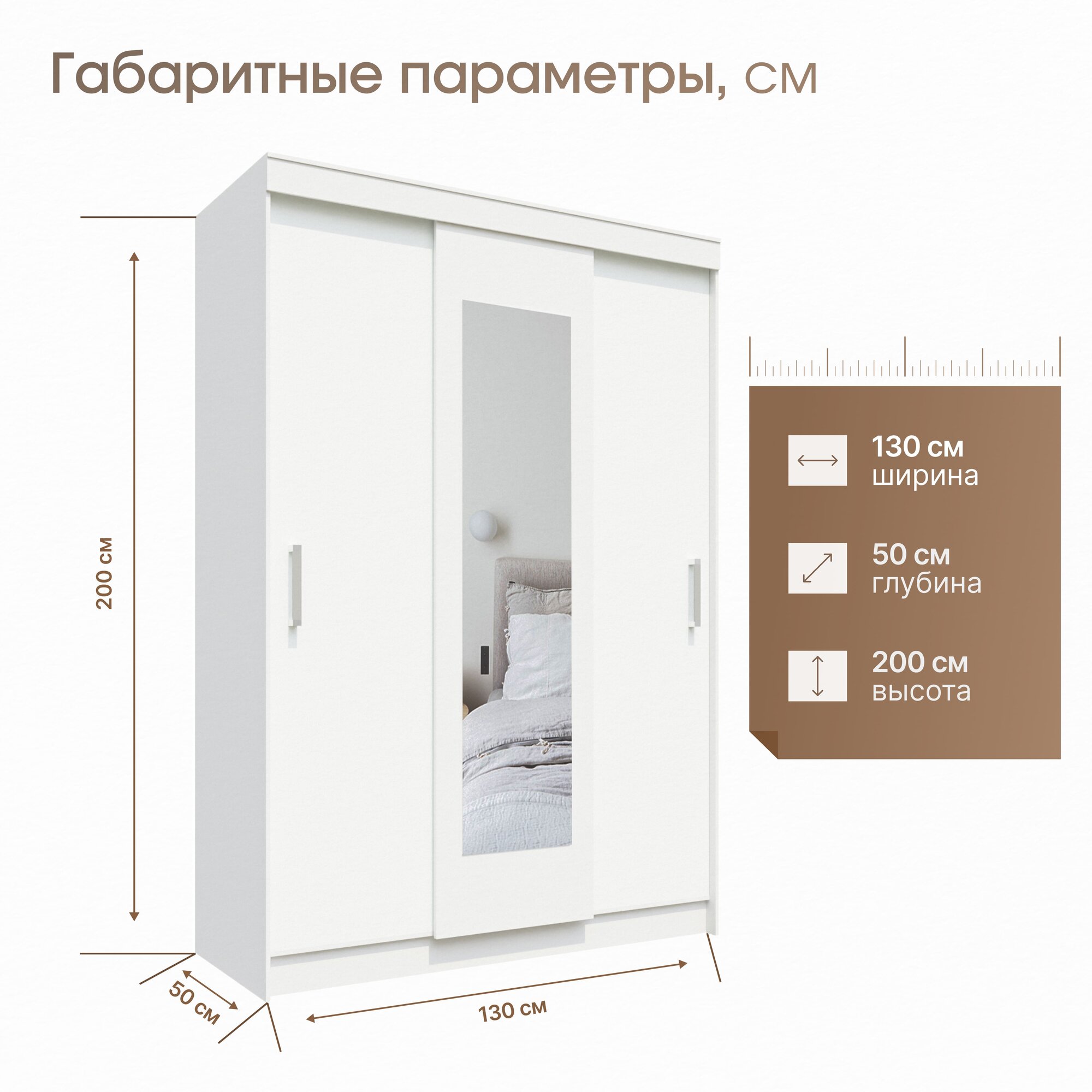 Шкаф-купе с зеркалом Бостон, 130х50х200 см, Белый, Пора Спать информация: