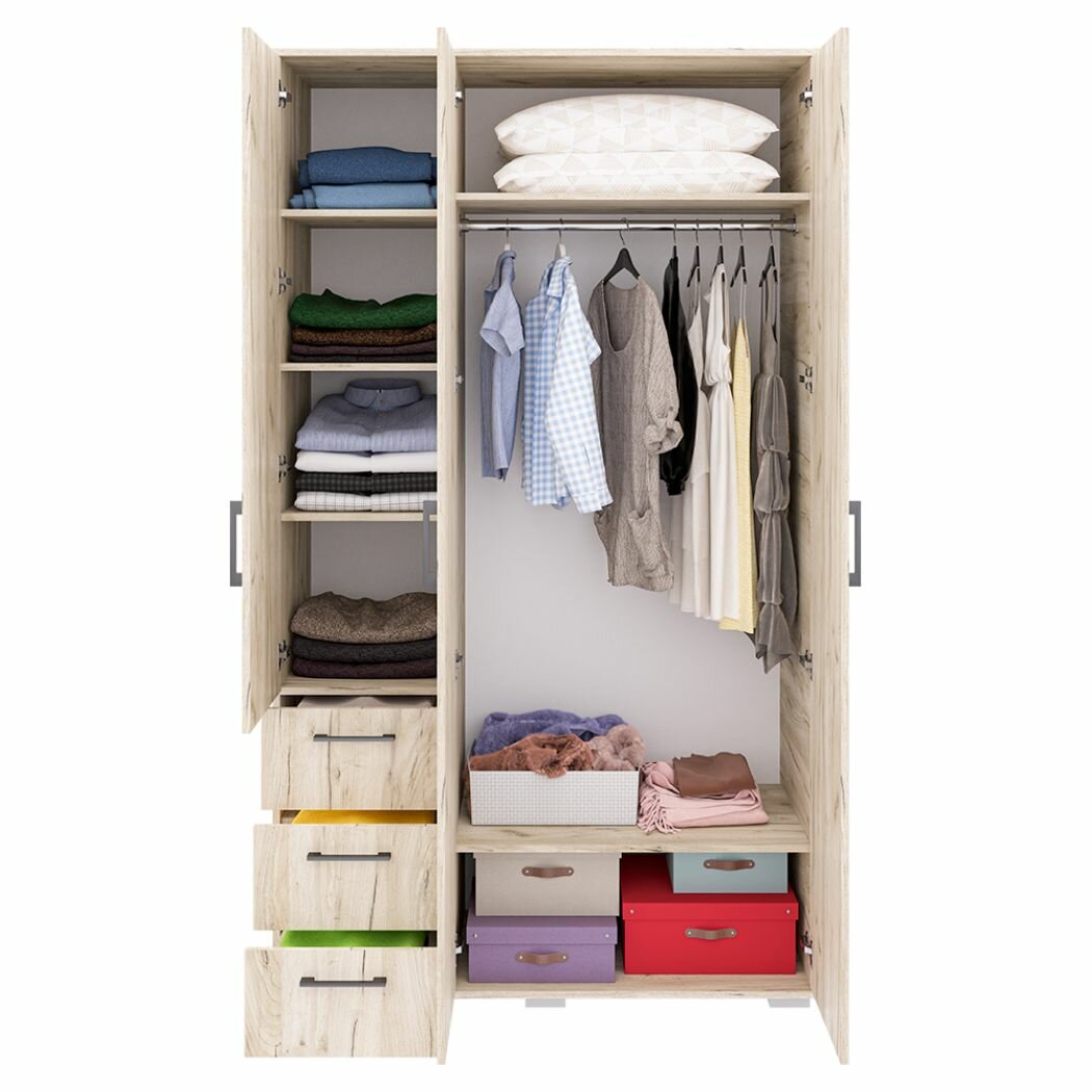 Шкаф МК "Пирамида" Шон-19 распашной, трехдверный, с 3-мя ящиками , цвет крафт серый, 210х120х52 см 14 740 ₽
