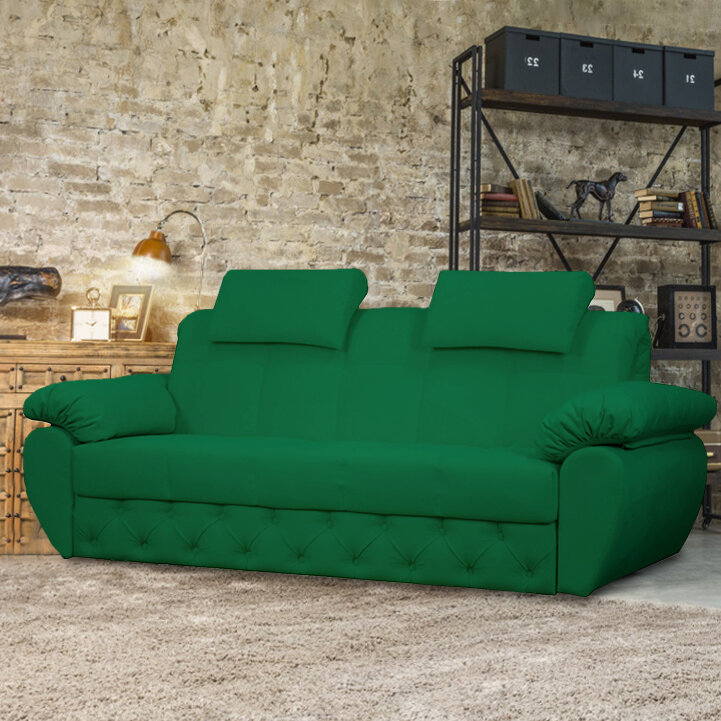 Отзывы на Диван кровать прямой раскладной с ящиком Майами-5 (160) механизм аккордеон микровелюр темно-зеленый Grand Family