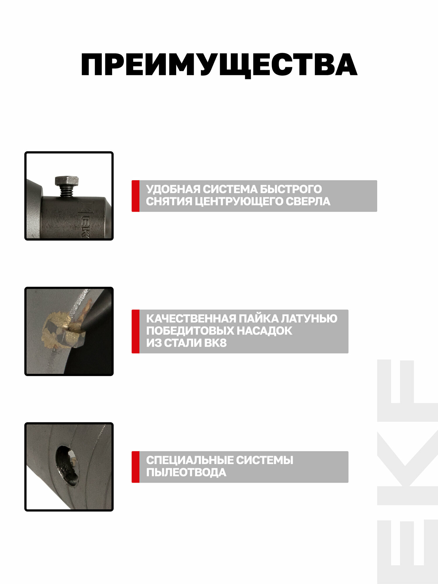 | В комплекте | клин для сверла, коронка, центрирующее сверло |