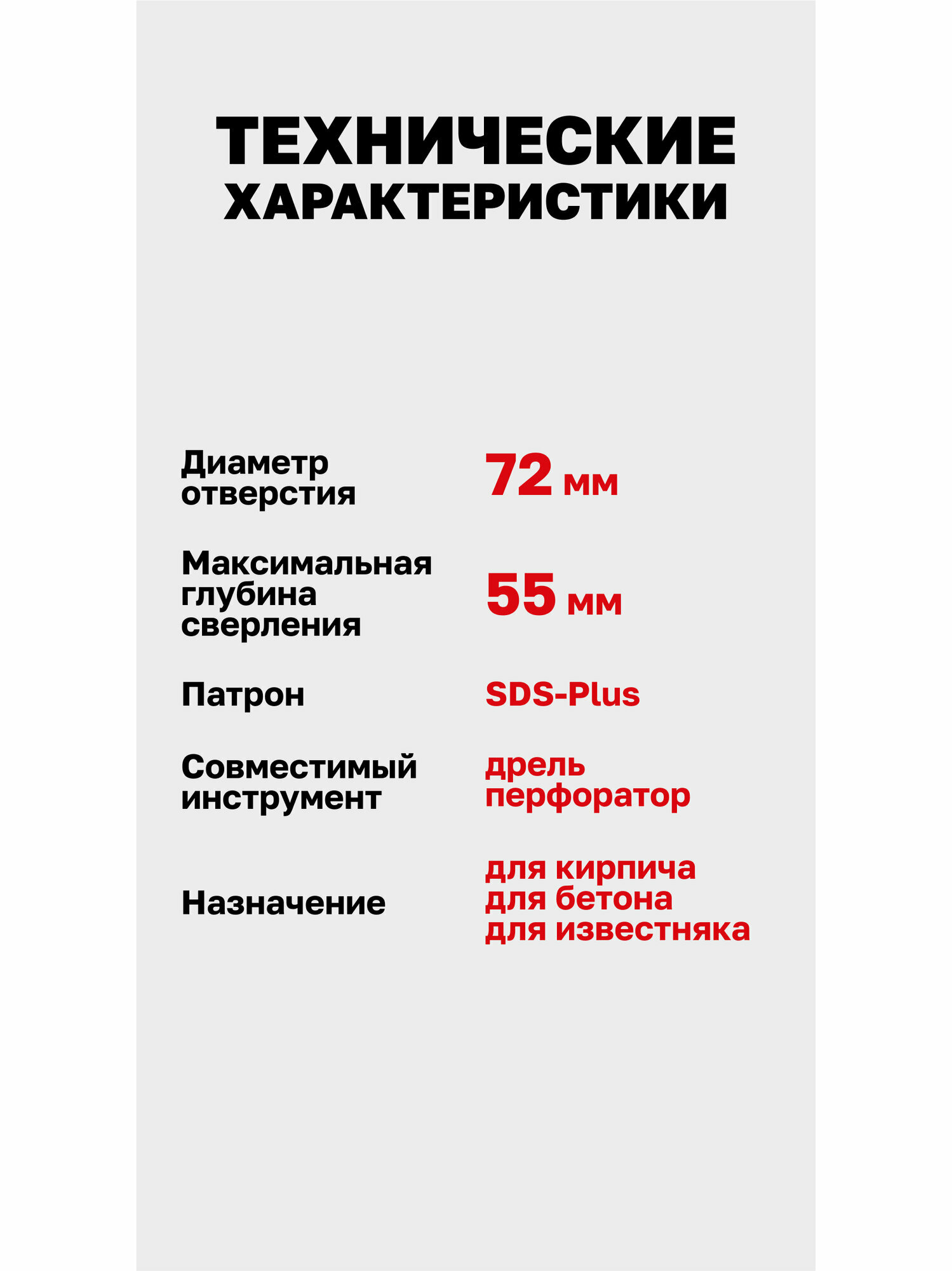 | Материал обработки | бетон / камень / кирпич / мягкий кирпич |