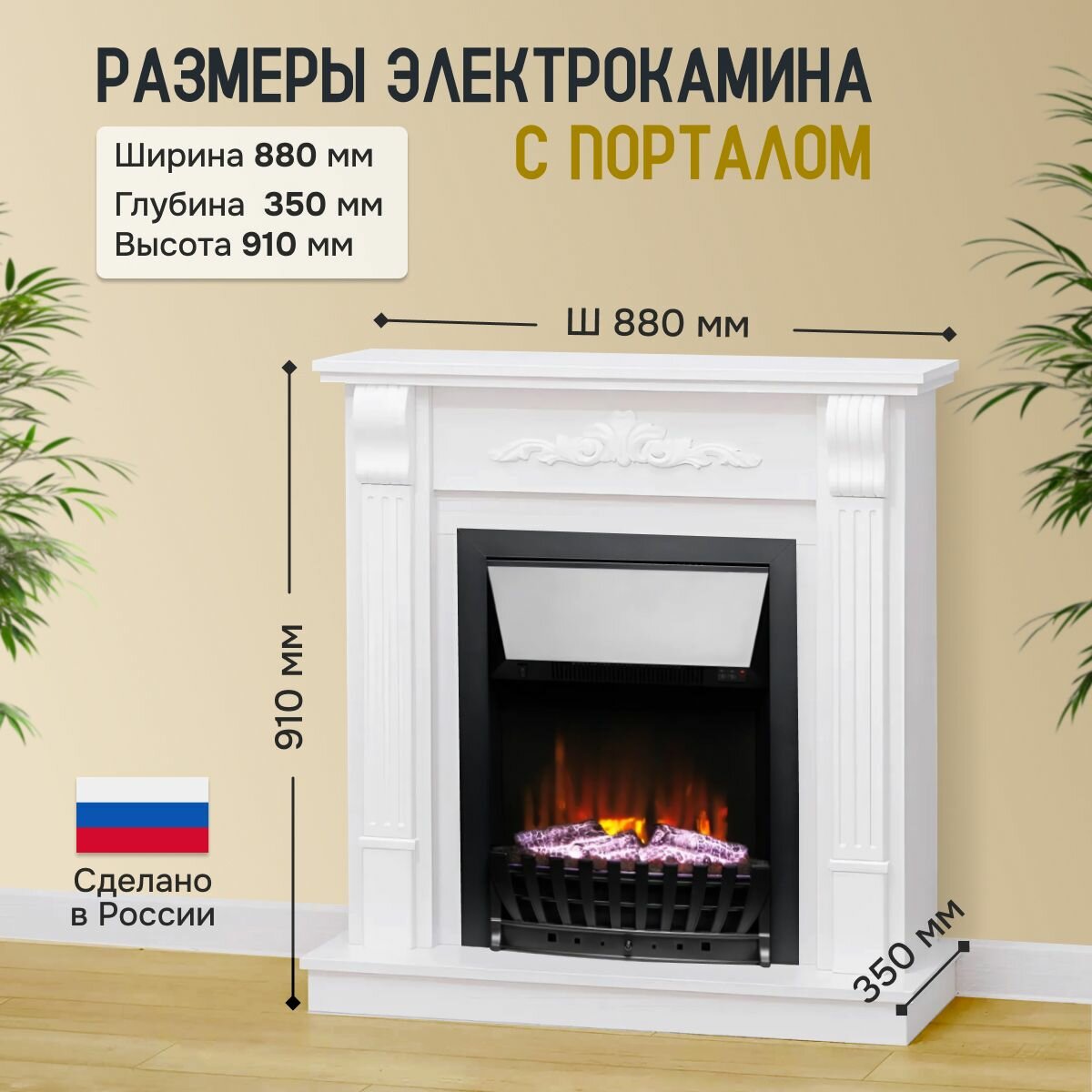 Камин электрический ELEKAM SILVER белый с очагом с пультом, обогревом и звуком потрескивания дров (Электрокамин)