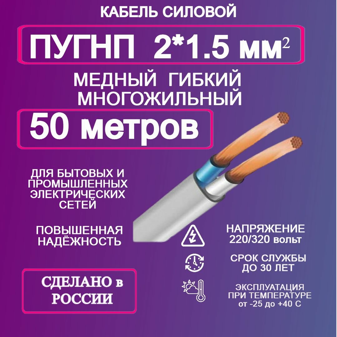 Силовой кабель ПУГНП 2*1,5 50 м информация: