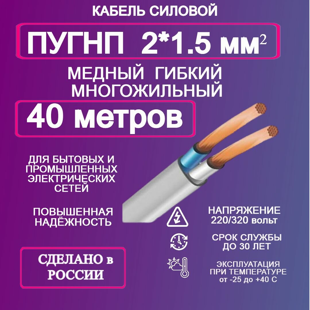 Силовой кабель ПУГНП 2*1,5 40 м информация: