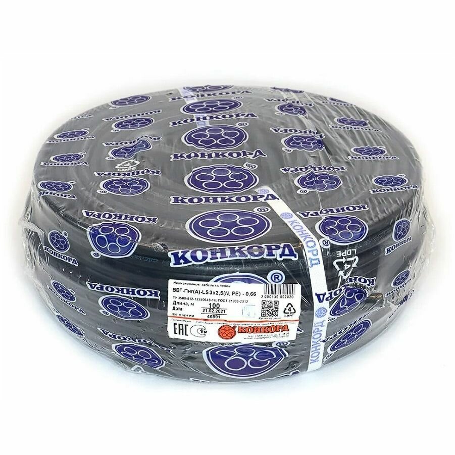Отзывы на Провод силовой ВВГ-Пнг(А)-LS 3х2,5 кв. мм, плоский, ГОСТ ("Конкорд") 100м.