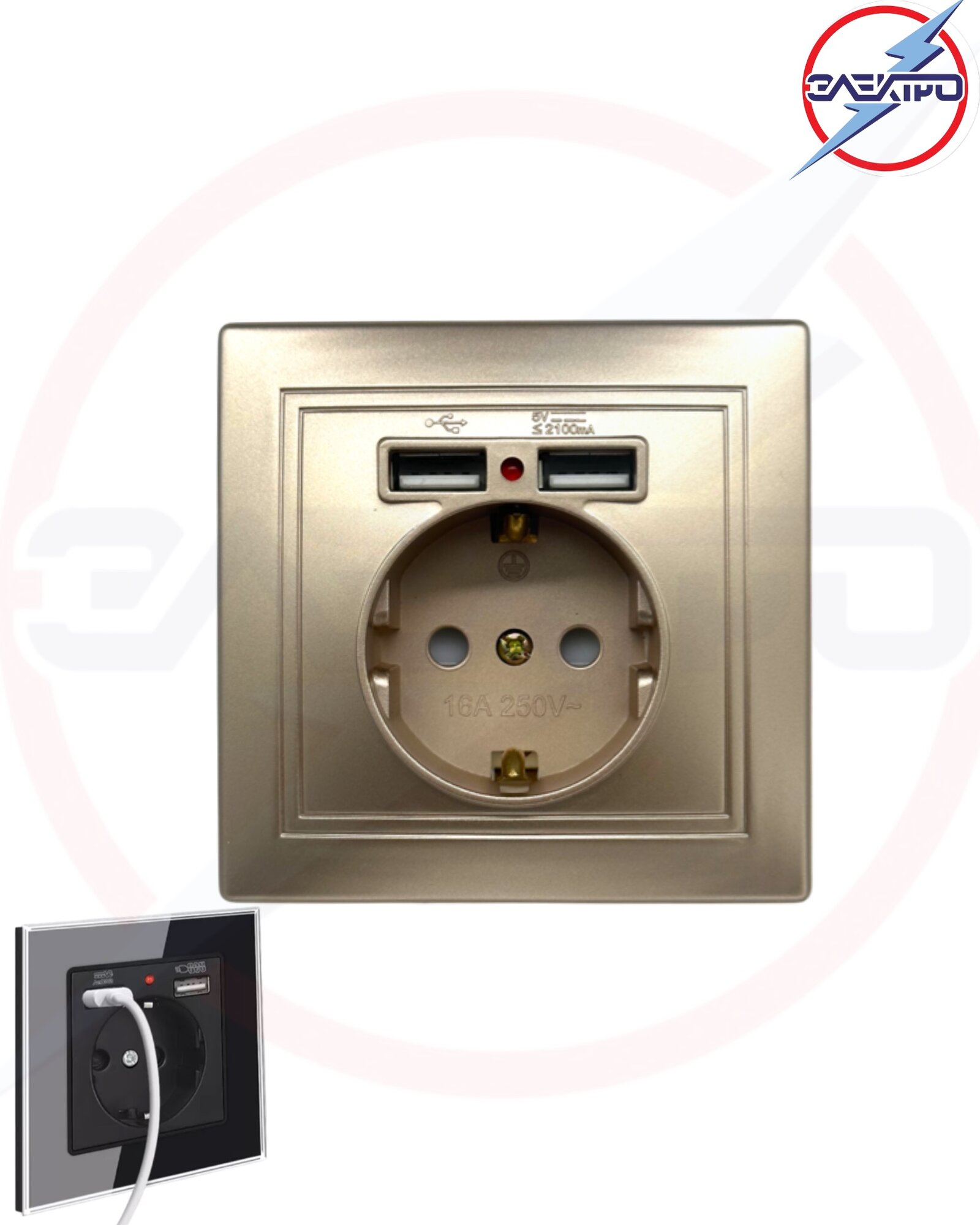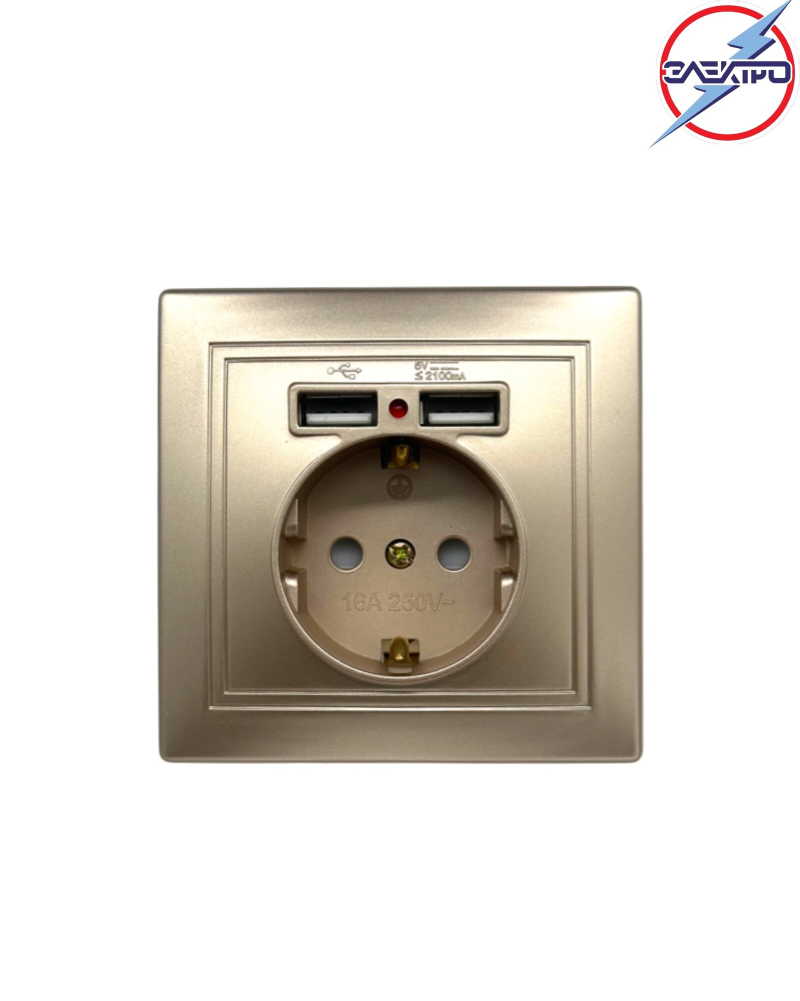 Розетка с заземлением Мира +2 USB жемчужное золото информация: