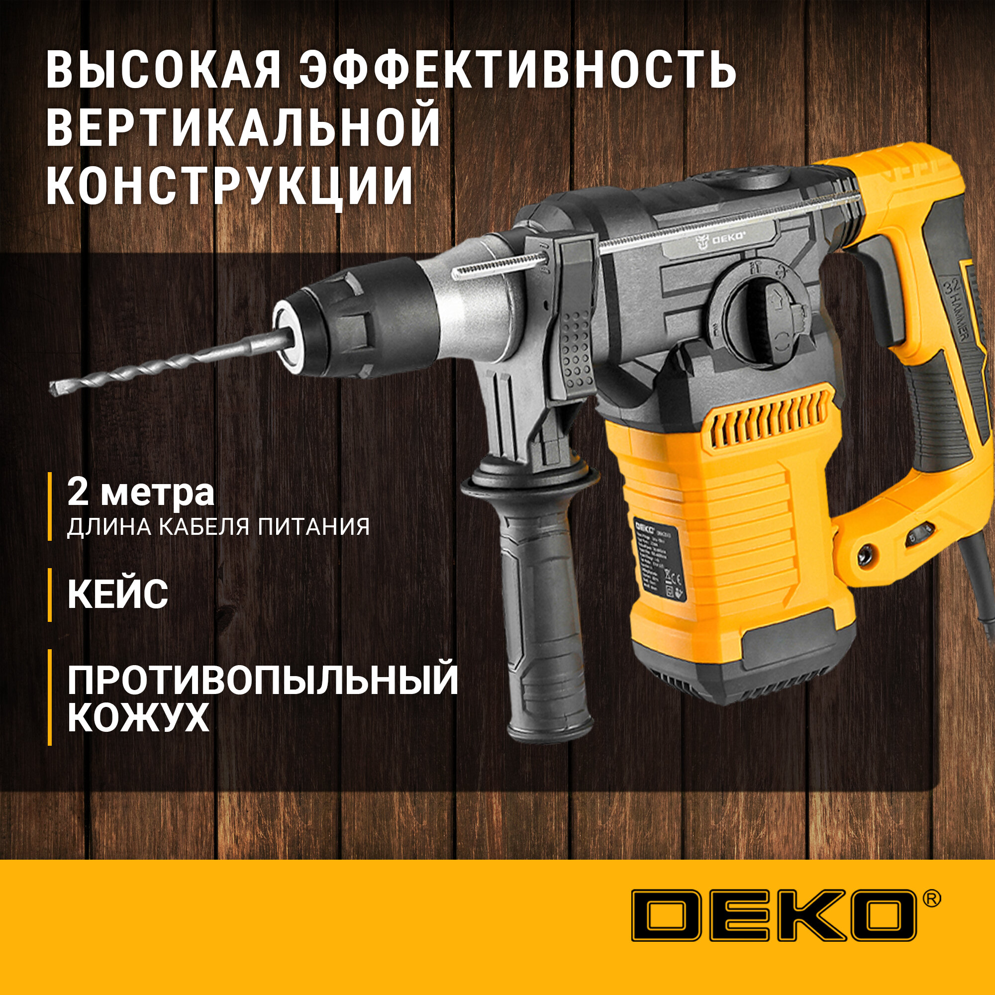 Перфоратор сетевой DEKO DKH2000, SDS-plus, 2000Вт, 6Дж, в кейсе, 4000 уд/мин информация: