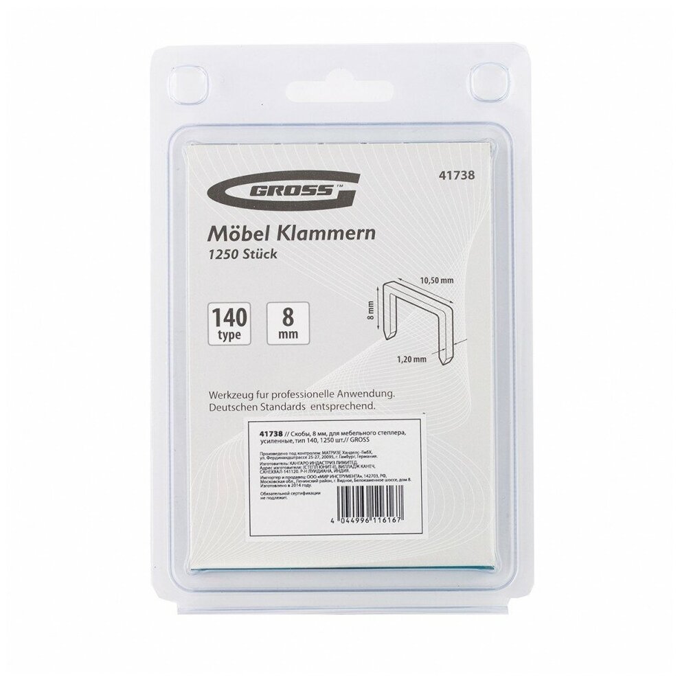 Скобы, 8 мм, для мебельного степлера, усиленные, тип 140,1250 шт Gross, 41738 информация: