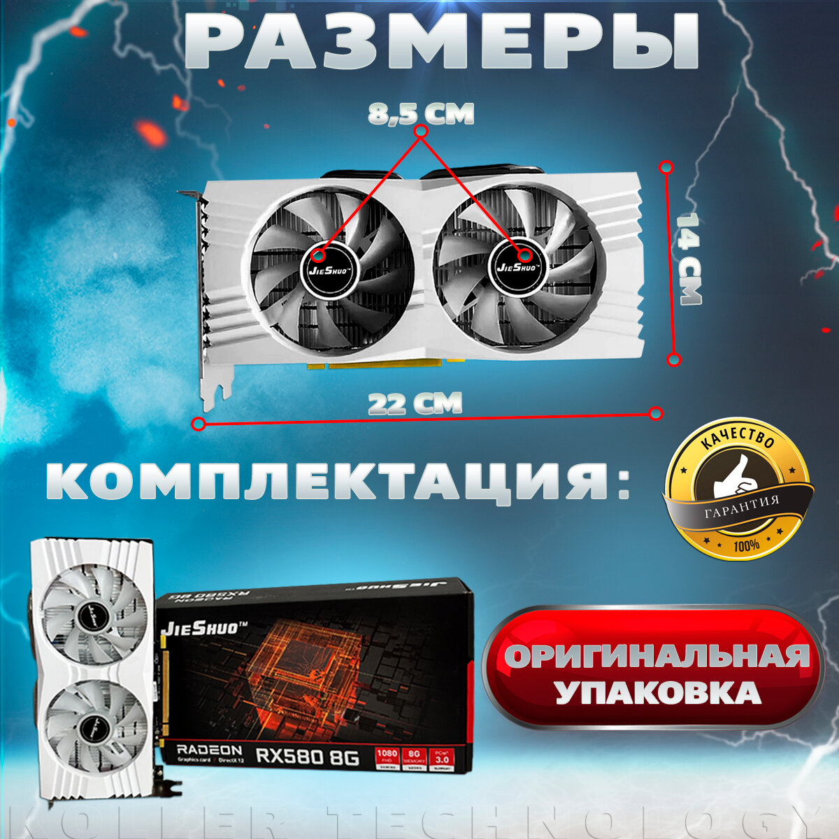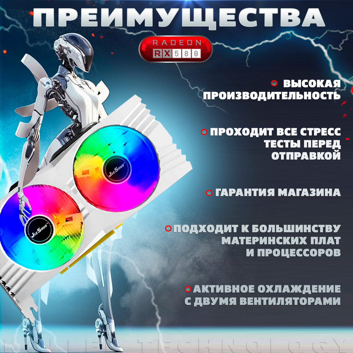 Видеокарта JieShuo Radeon RX580, 8GB, GDDR5, игровая для компьютера информация: