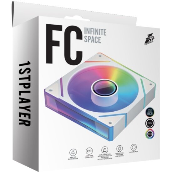 Вентилятор 1STPLAYER FC(AP) White / 120mm, ARGB, PWM, 600-1800rpm, 3pin / FC(AP)-WH-1IN1