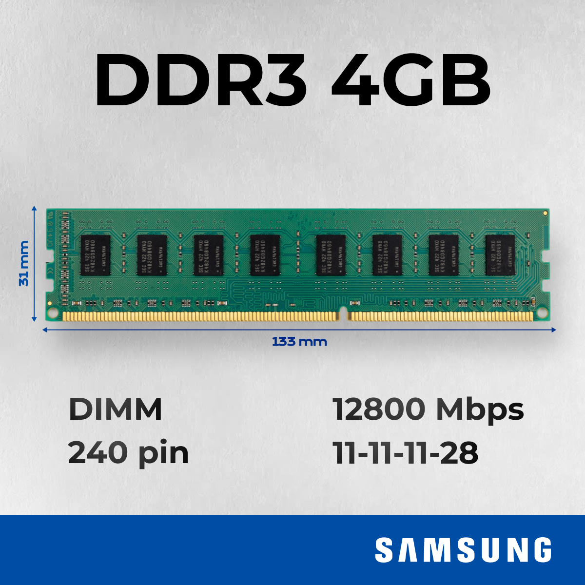Оперативная память на ПК Samsung DDR3 2шт по 4GB 1600MHz 1.5V CL11 DIMM