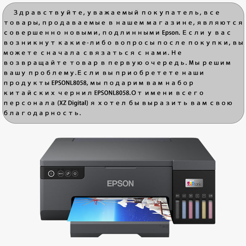 Принтер Epson L8058 / L8050 WI-FI USB + чернила в комплекте, A4 информация: