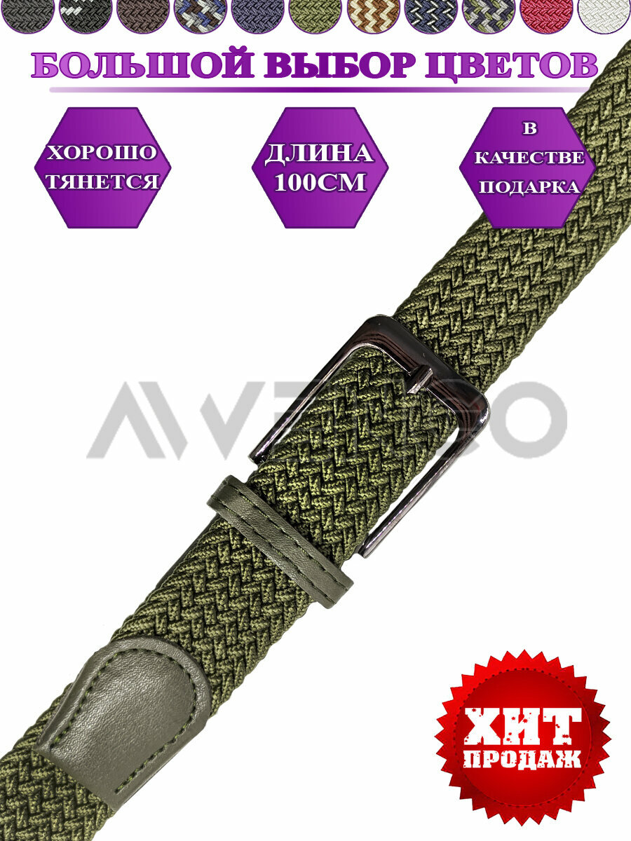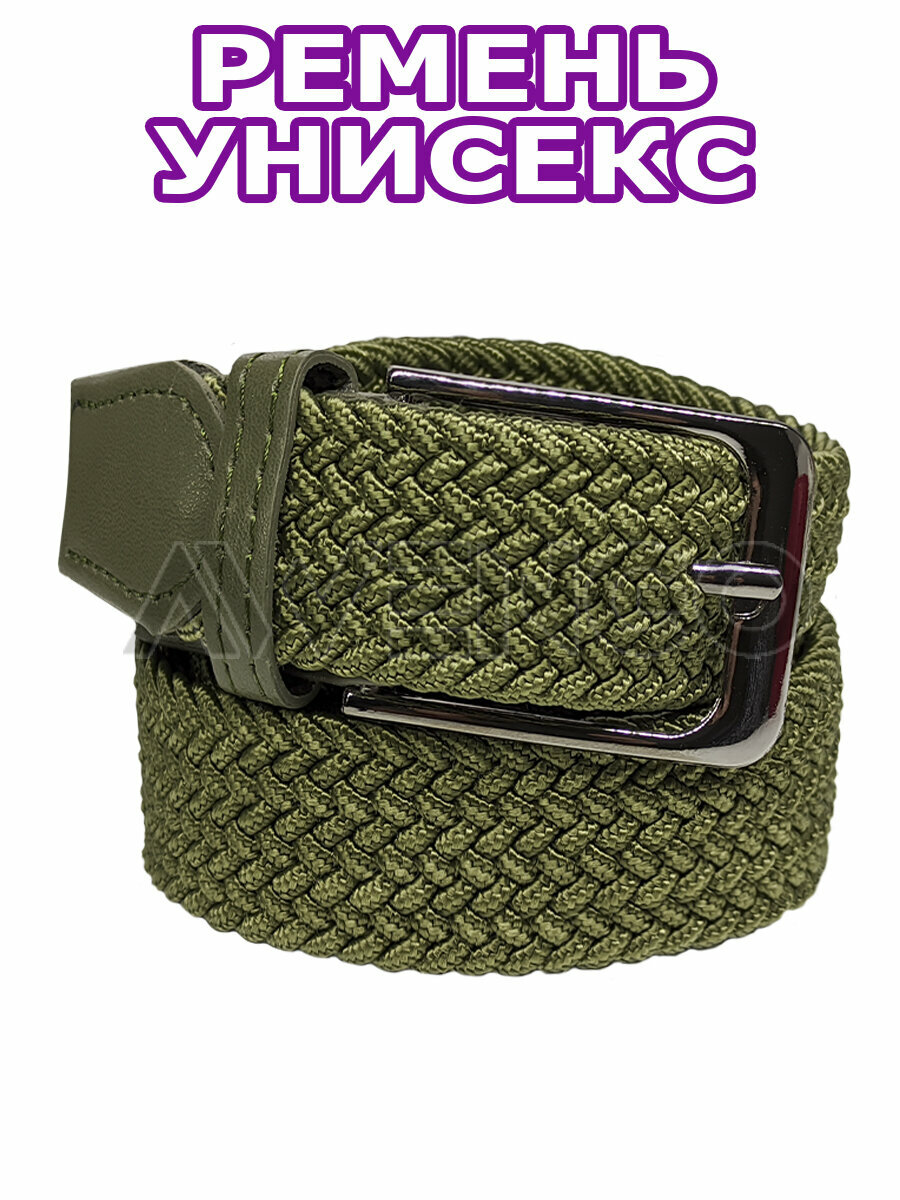 Ремень-резинка с пряжкой универсальный для женщин,мужчин и подростков. Плетеный. Длина 100 см,ширина 3,5 см. Хаки