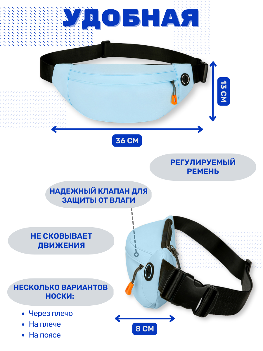 Сумка поясная , фактура матовая, голубой информация: