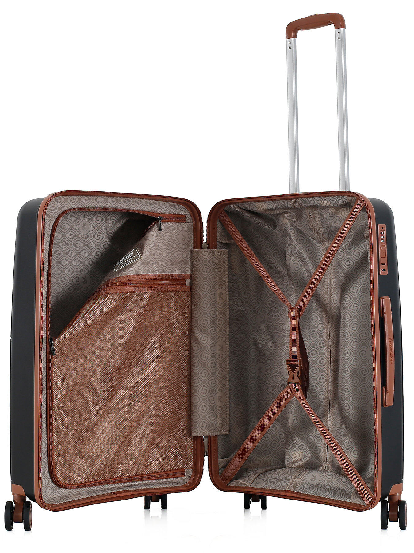 Чемодан Robinzon, 63 л, черный, коричневый информация: