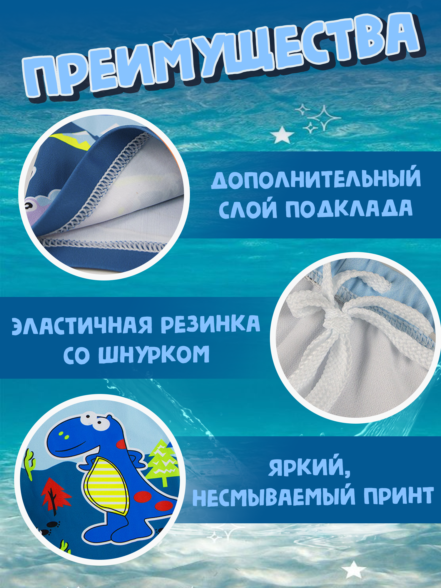 | Подробная комплектация | Плавки пляжные для мальчика 1 шт |
