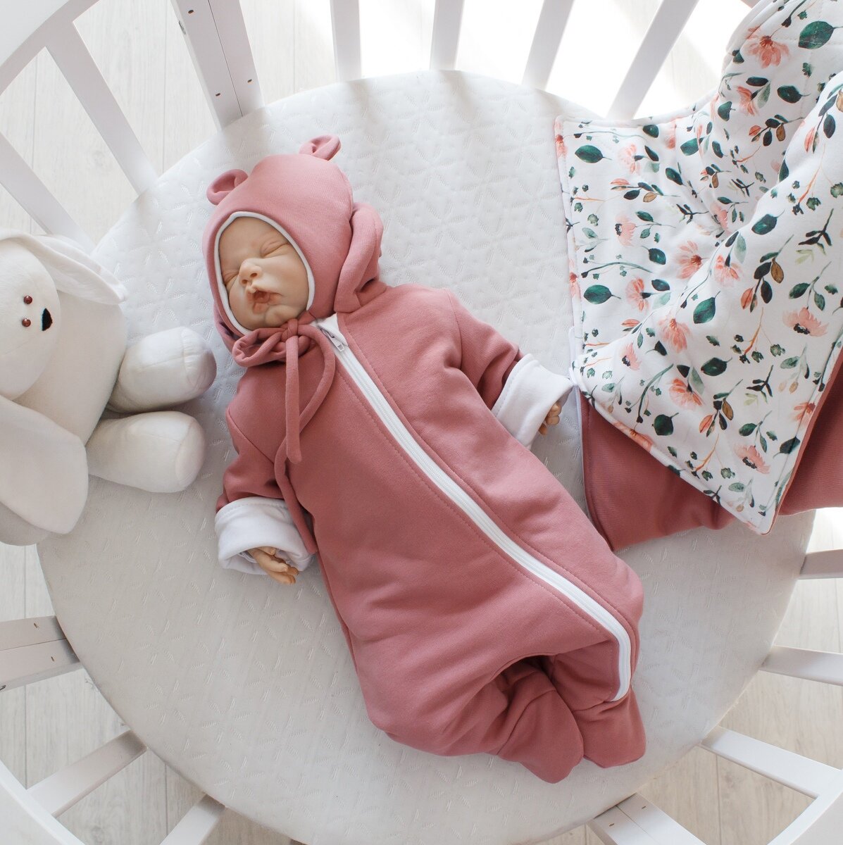 Детский комбинезон из футера, для новорожденного, 62 размер (от 0 до 3 мес.), MAMINY ZAPISKY, сухая роза, закрытые ножки 1 980 ₽