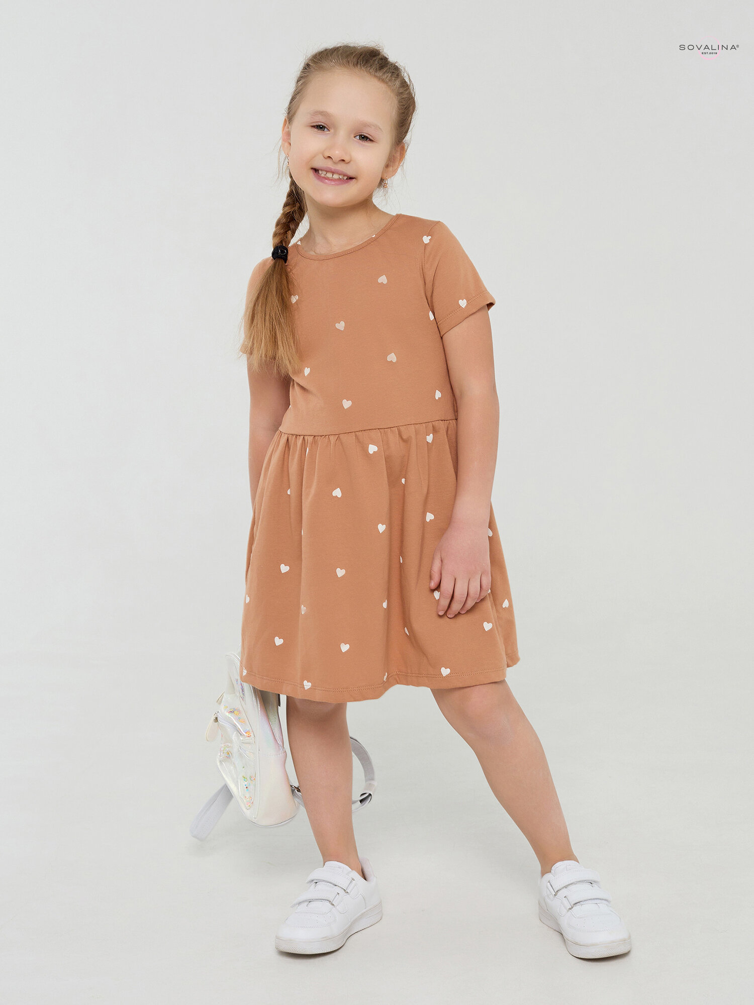 Платье для девочки SOVAlina Лето "Сердца на песочном, коричневое, размер 104 629 ₽