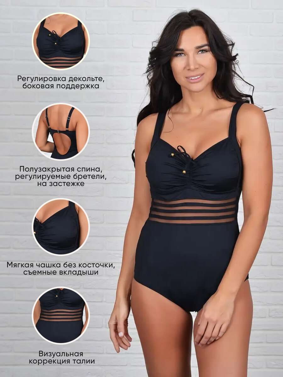 Купальник MollenaLayers с сеточкой на большую грудь, размер 52, черный информация: