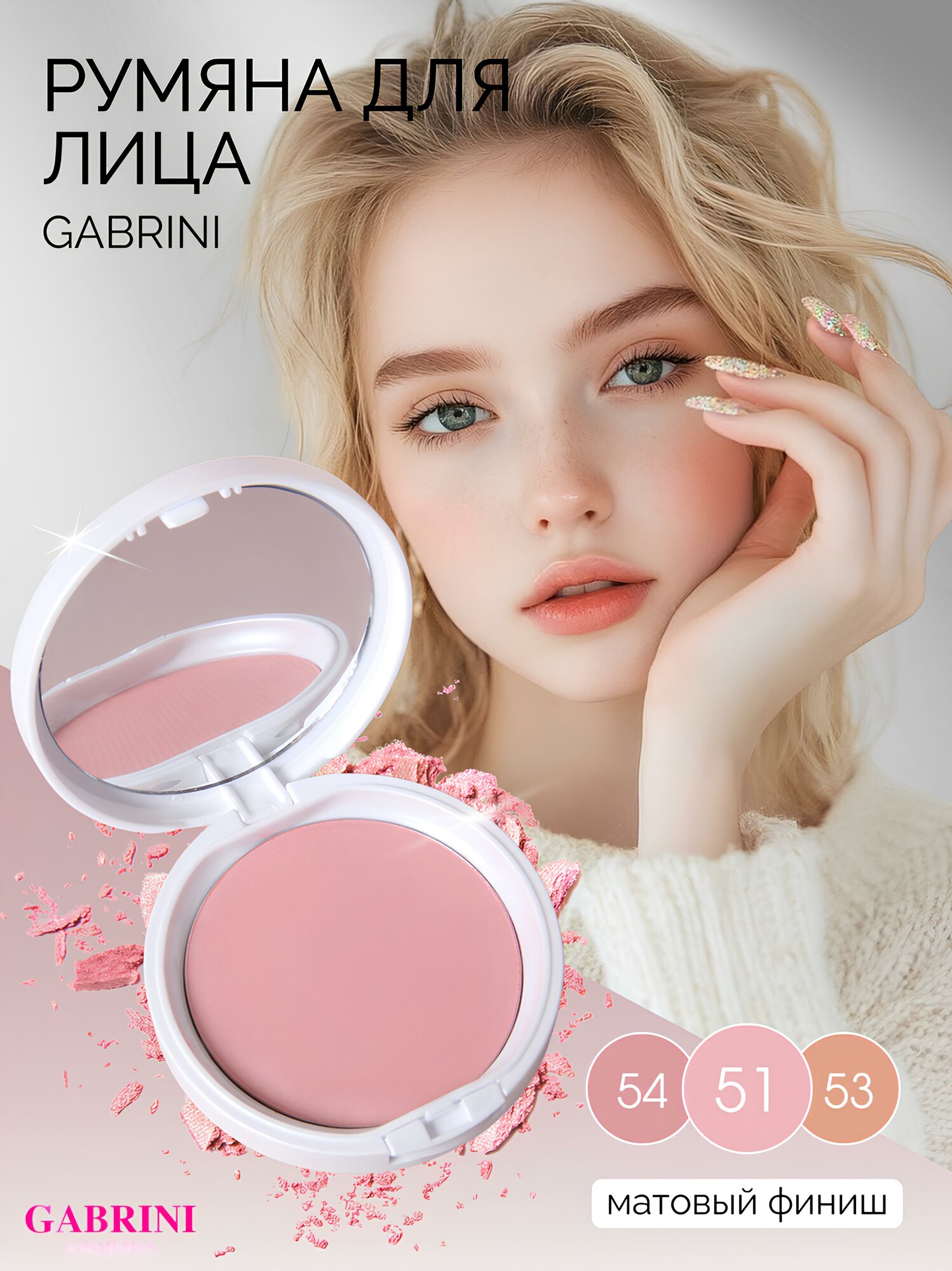 10 цен на Румяна для лица Gabrini Blush ON PROFESSIONAL, матовые, сатиновые с зеркальцем и пуховкой, тон 51 розовый, 12,0 г.