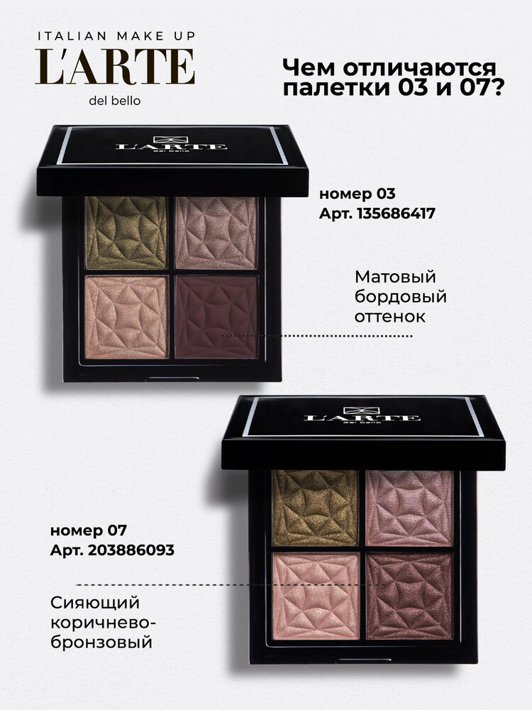 Палетка теней L'arte del bello QUADRO ELEGANTO, 07 give a glam оливково-коричневая, 4 цвета информация: