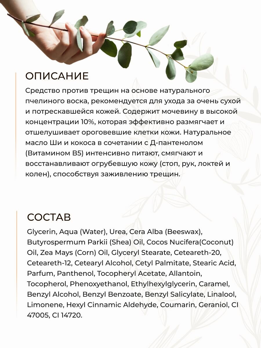 Крем-воск от трещин для очень сухой кожи SOS эксперт, увлажняющий с пантенолом, мочевиной и пчелиным воском, 75 мл информация: