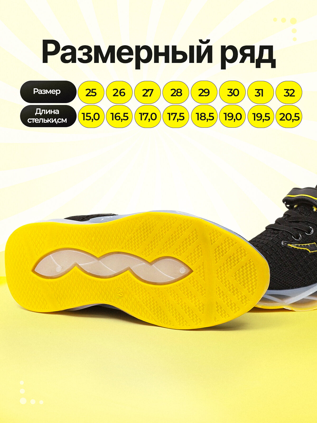 Кроссовки Makfly, размер 28, черный/желтый информация: