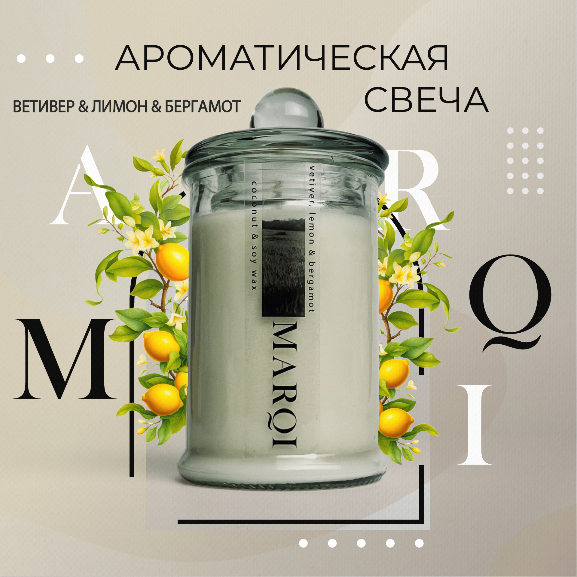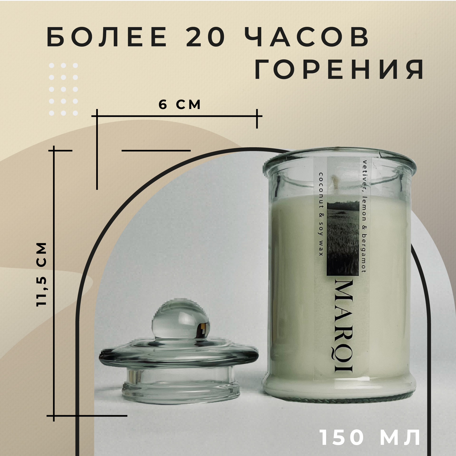 Свеча ароматическая с ароматом "Ветивер, лимон, бергамот" из кокосово-соевого воска с хлопковым фитилем информация: