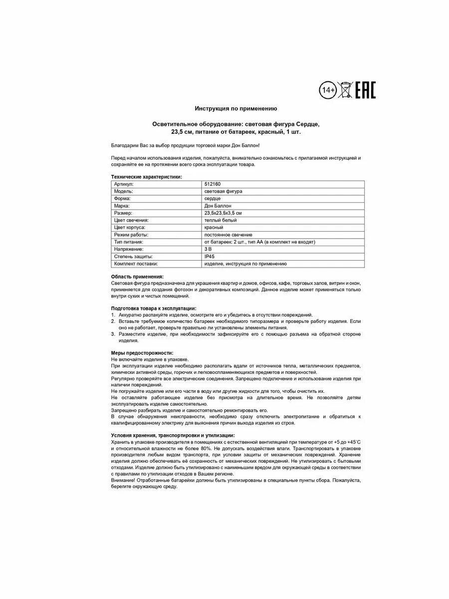 Световая фигура Сердце, 23,5*23,5*3,5 см. Красный, 1 шт. информация:
