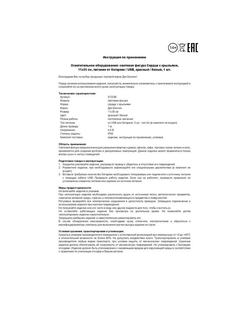 Световая фигура Сердце, с крыльями, 11*35 см. Красный/Белый информация: