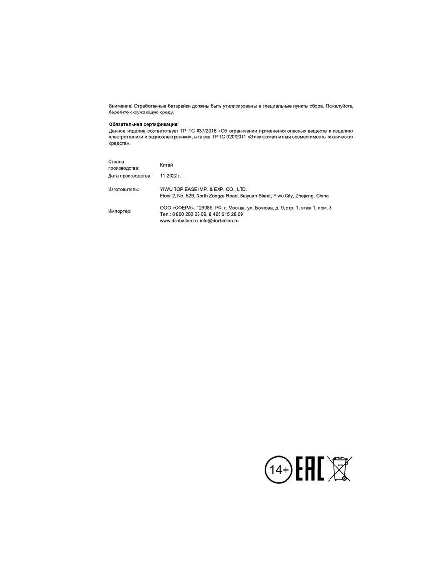 | Количество предметов | 1 шт. |