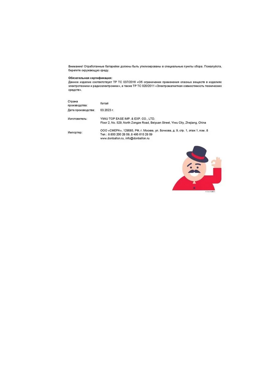 | Количество предметов | 1 шт. |