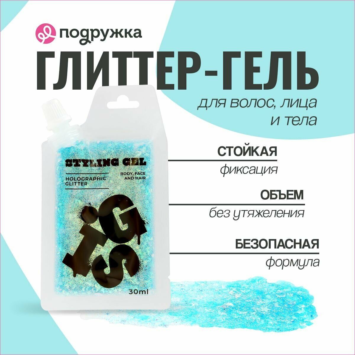 Глиттер-гель GIS для волос, лица и тела, оттенок Blue, 30 мл информация: