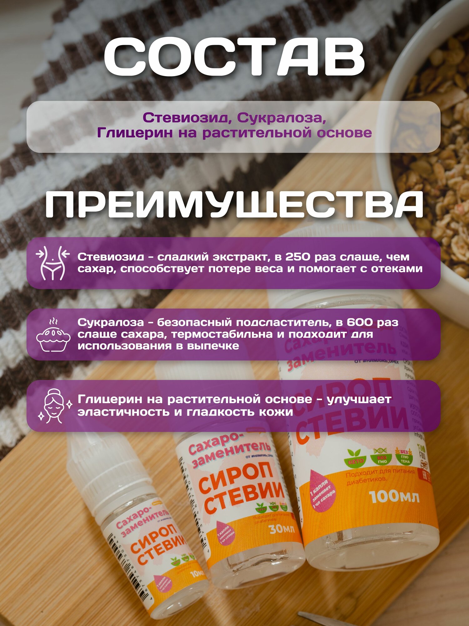 | Состав | стевия, сукралоза, глицерин на растительной основе |