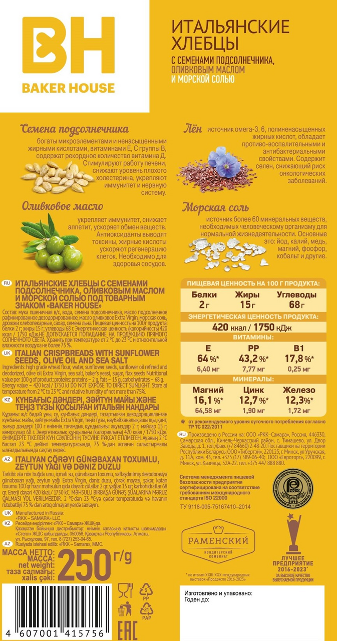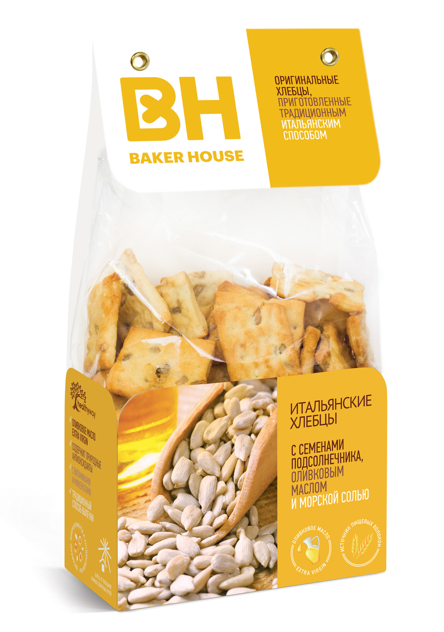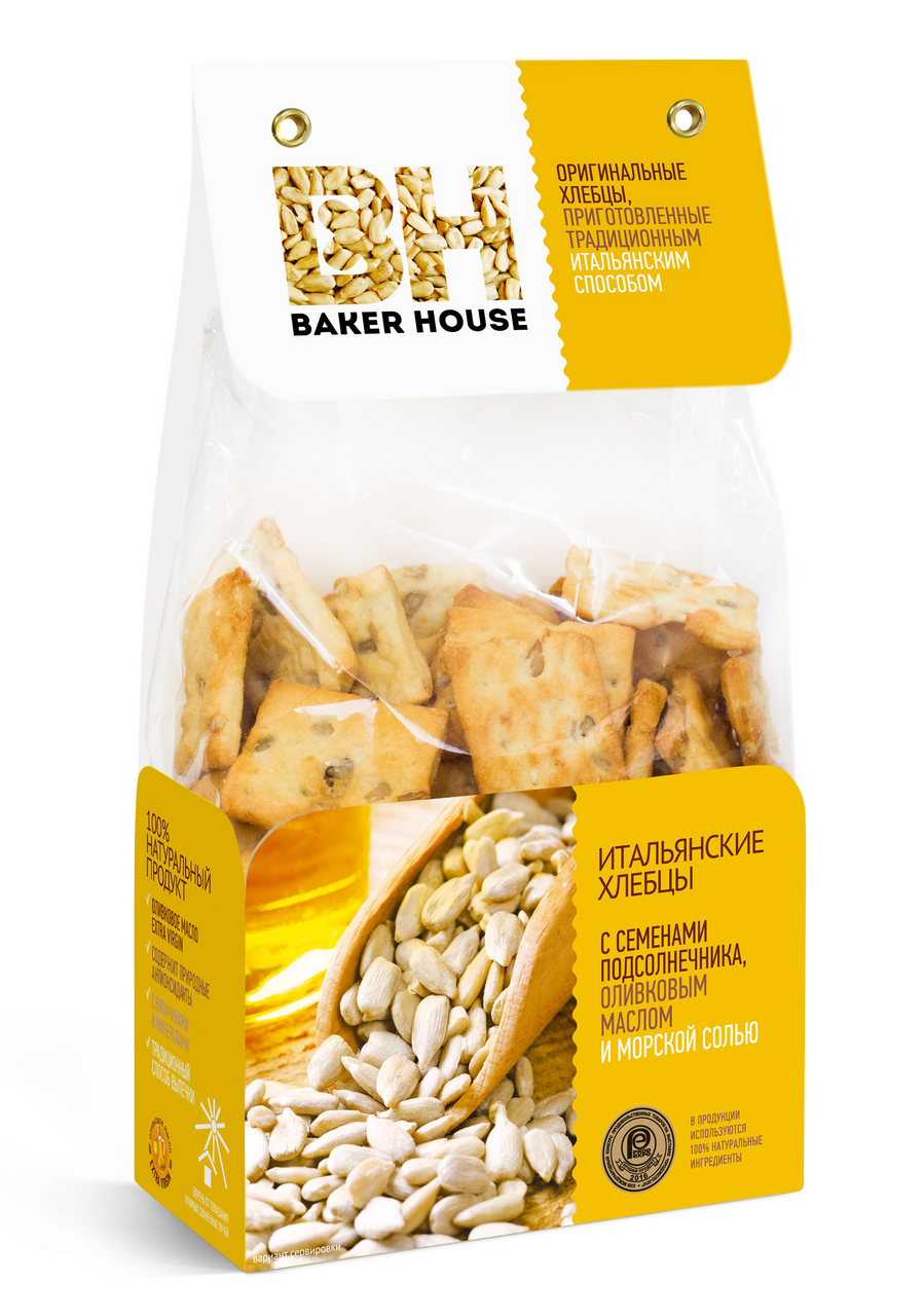 Хлебцы пшеничные Baker House Итальянские с семенами подсолнечника оливковым маслом и морской солью 250 г информация: