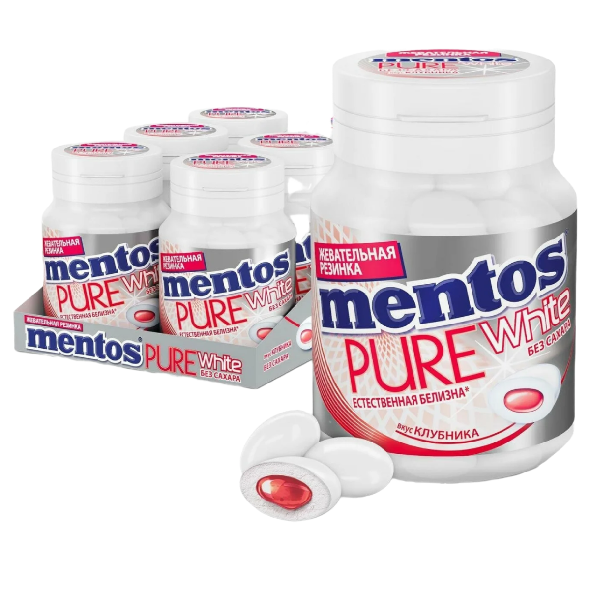 Mentos MIX жевательная резинка Pure fresh Виноград, Pure white нежная мята , Клубника (54х3) 162 г 965 ₽