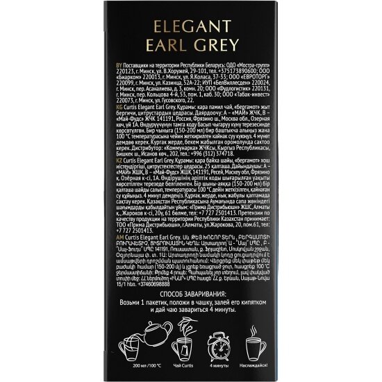 Чай черный Curtis "Elegant Earl Grey" с бергамотом 25 пакетиков информация: