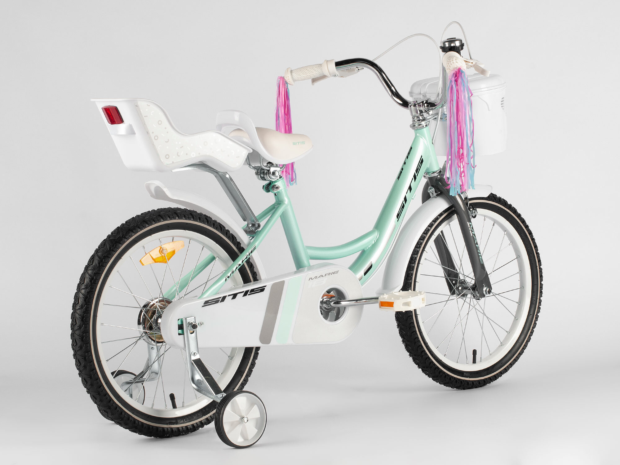 Велосипед Sitis Marie 18" (2024) детский для девочек, сталь, для роста 110-125 см, Mint, ободной и барабанный тормоз информация: