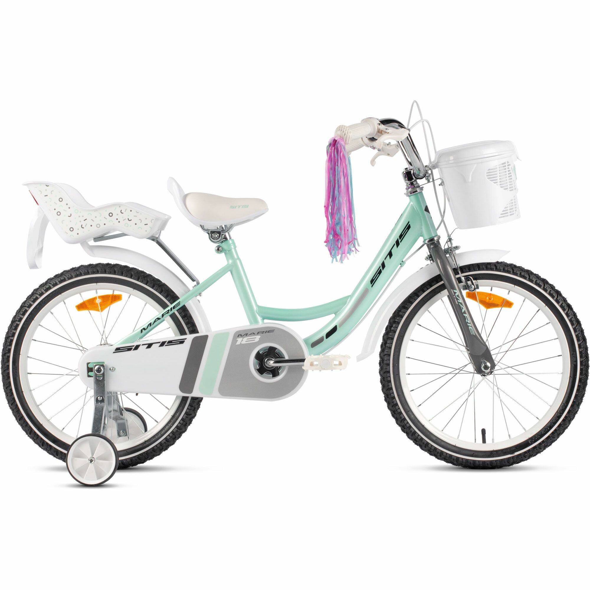Велосипед Sitis Marie 18" (2024) детский для девочек, стальная рама с барабанными тормозами, 1 скорость, для роста 110-125 см, цвет Mint