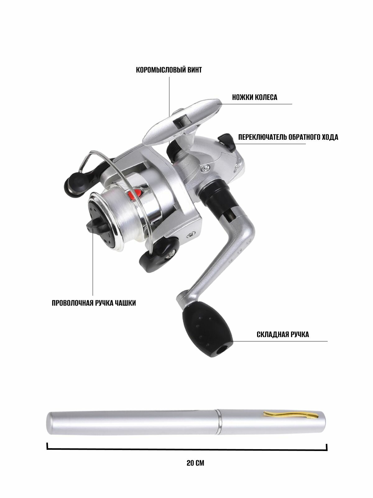 Складная портативная мини удочка с катушкой и леской серебро информация:
