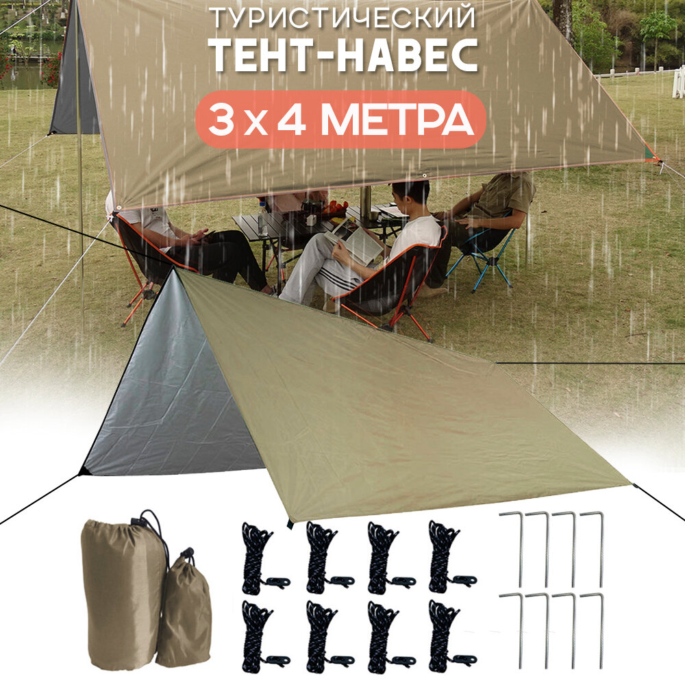 10 цен на Тент походный туристический садовый водонепроницаемый 3 х 4 м, цвет - хаки