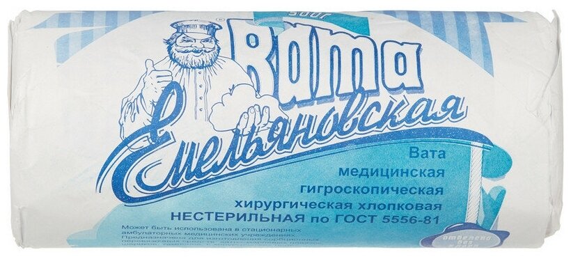 Емельянъ Савостинъ Вата медицинская нестерильная "Емельянъ Савостин", хирургическая, фасованная по 50г./В упаковке шт: 3