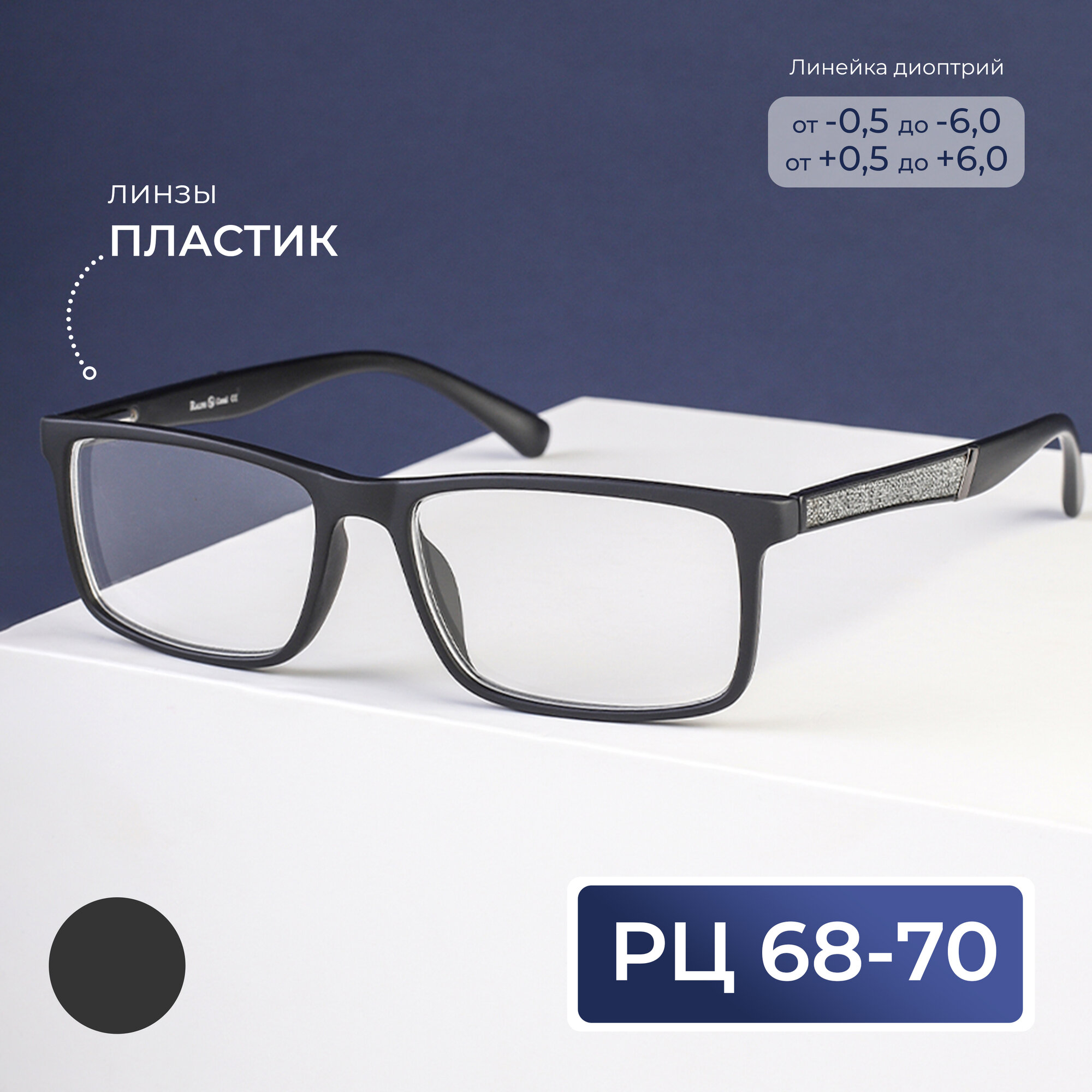 Готовые очки для чтения РЦ 68-70 (+6.00) RALPH 0682 C1, с футляром, цвет черный-матовый, заушник серый, линзы пластик, РЦ 68-70 916 ₽