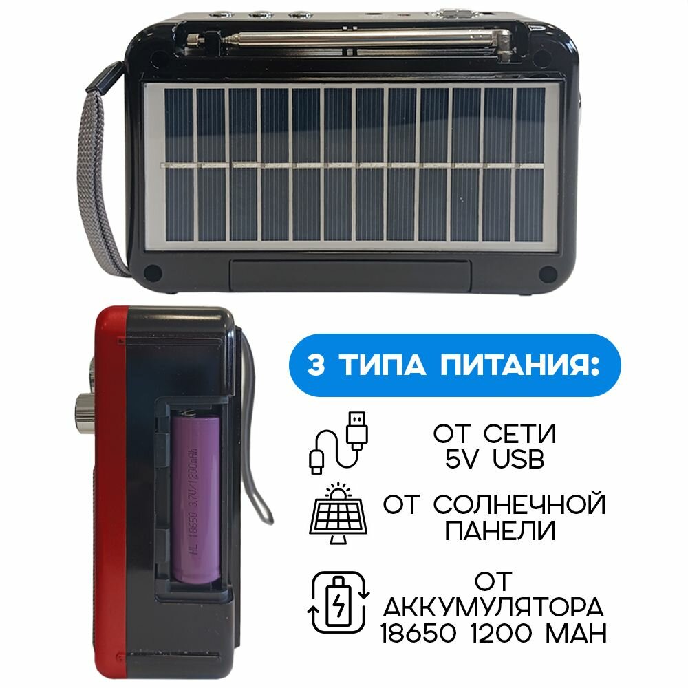 10 цен на Радиоприемник Waxiba "XB-523", переносной, с солнечной батареей, цвет - красный