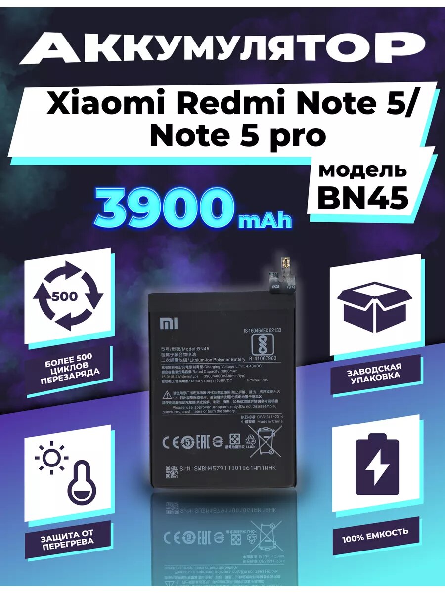 Аккумулятор для Xiaomi Redmi Note 5/Note 5 Pro 3900 mAh информация: