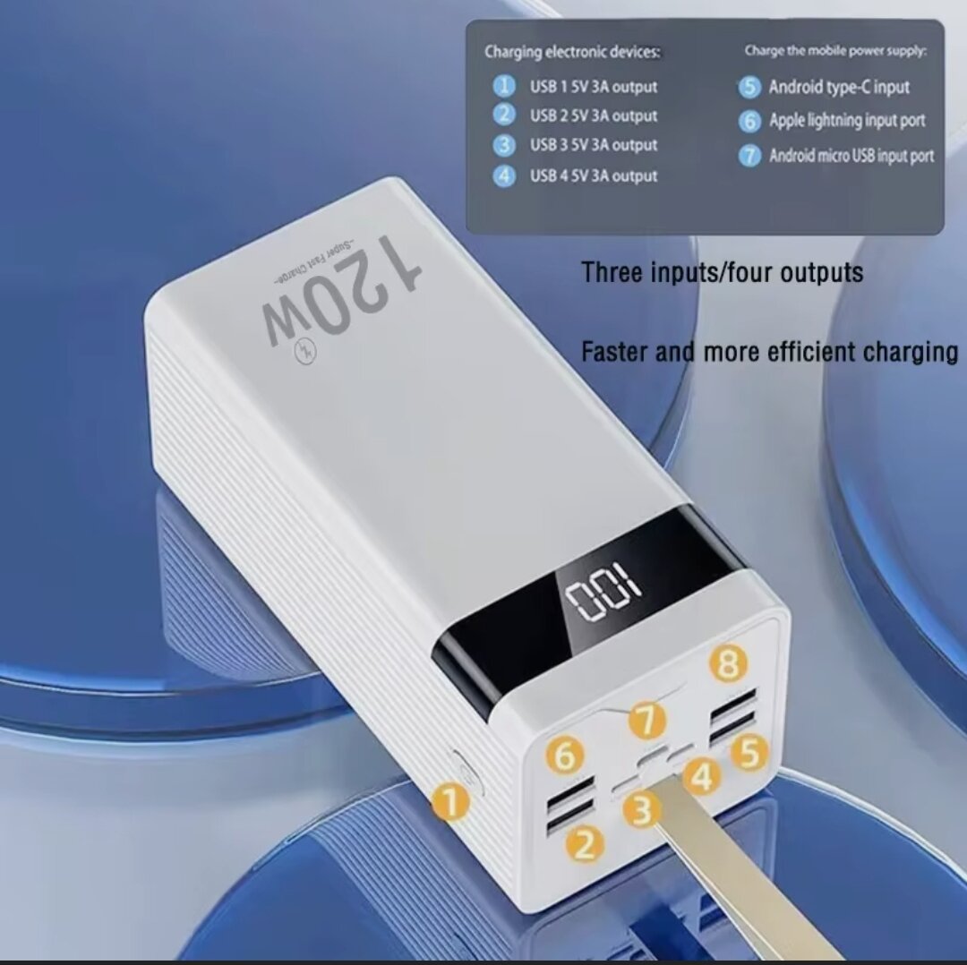 Внешний аккумулятор Power Bank 80000mAh, универсальный с мощным прожектором и фонариком для всех телефонов, 80000 мАч, 3 300 ₽